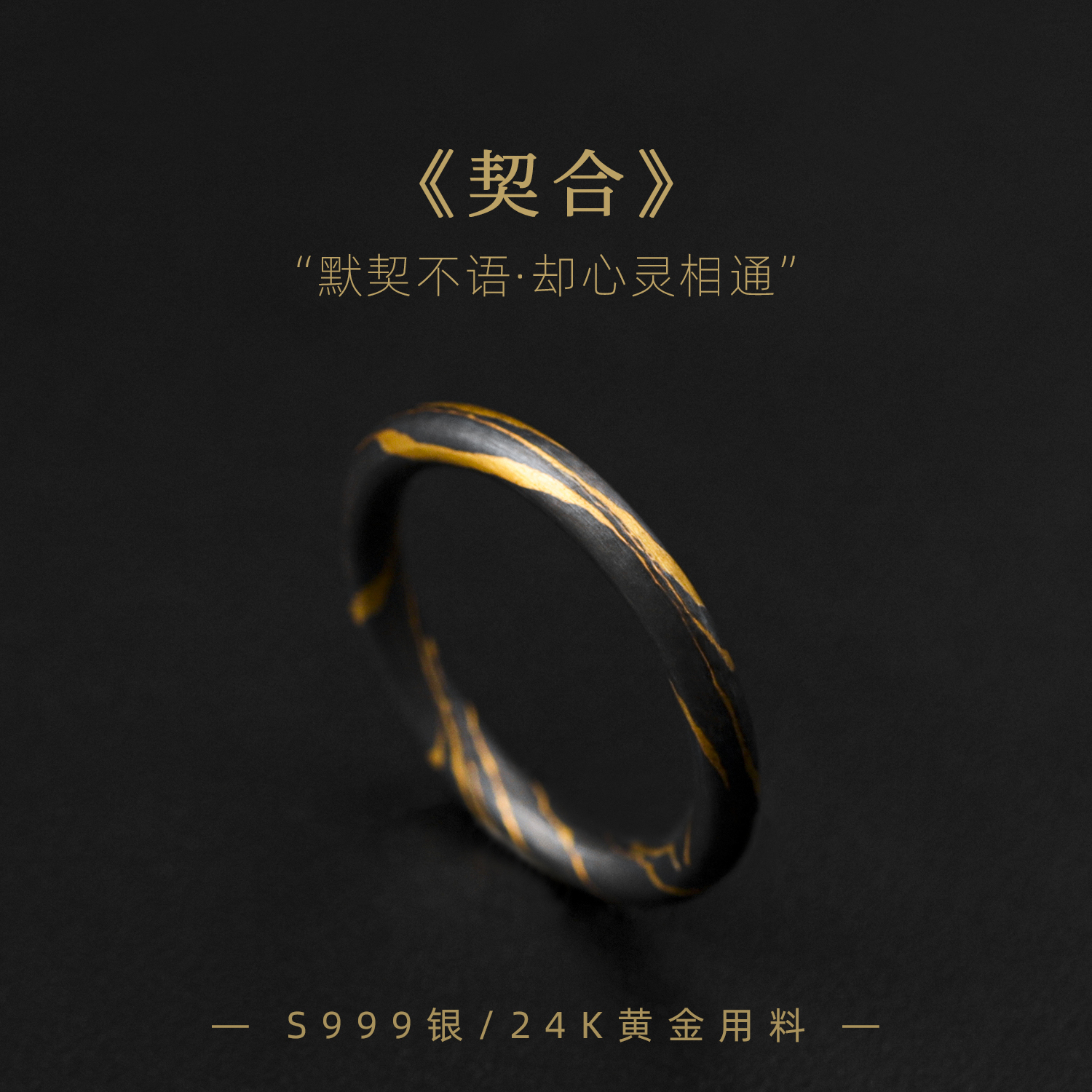 四月初寻轻奢情侣足银小众圆纯银银包金戒指原创闭口简约设计对戒热门设计联盟服务商