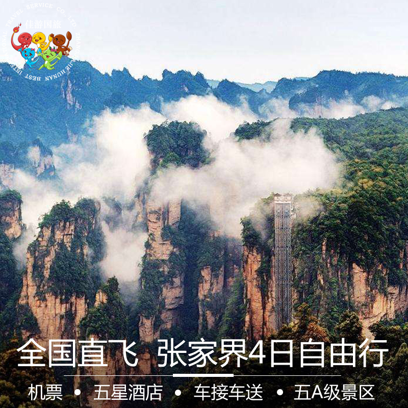 全国直飞张家界旅游自由行4天3晚精选五星级酒店套餐旅行含接送机热门设计联盟服务商